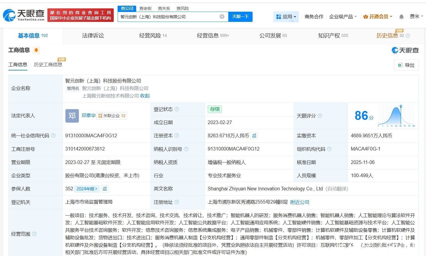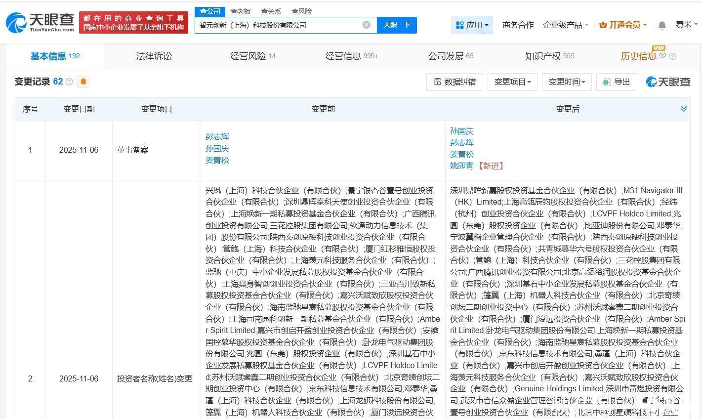 天眼查工商信息显示,近日,智元机器人关联公司智元创新(上海)科技有限公司发生工商变更,企业名称变更为智元创新(上海)科技股份有限公司,同时多位主要人员发生变更。