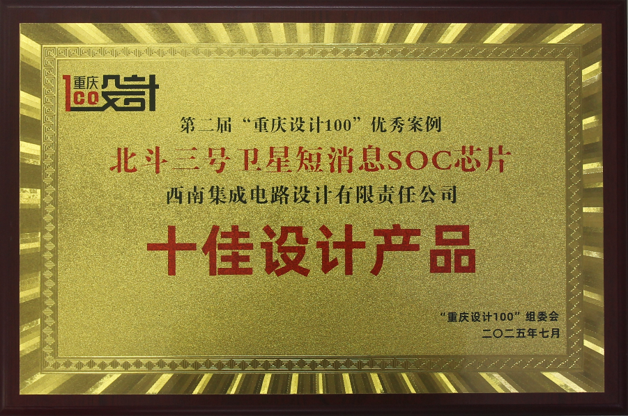 近日,由子公司西南设计自主研制的全球首款“北斗三号短报文通信SoC 芯片”凭借突出的技术创新实力和强大的产品应用价值,斩获“2025年度中国创新IC强芯奖-突破奖”与“重庆市设计100-十佳设计产品”两项荣誉。
